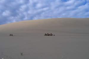 腾格里虽然不是最大的沙漠,但其沙峰壮阔宏大,沙粒细微软滑,颜色金黄闪亮,别具特色。行至大漠深处,除了金色的沙海,腾格里会给游客